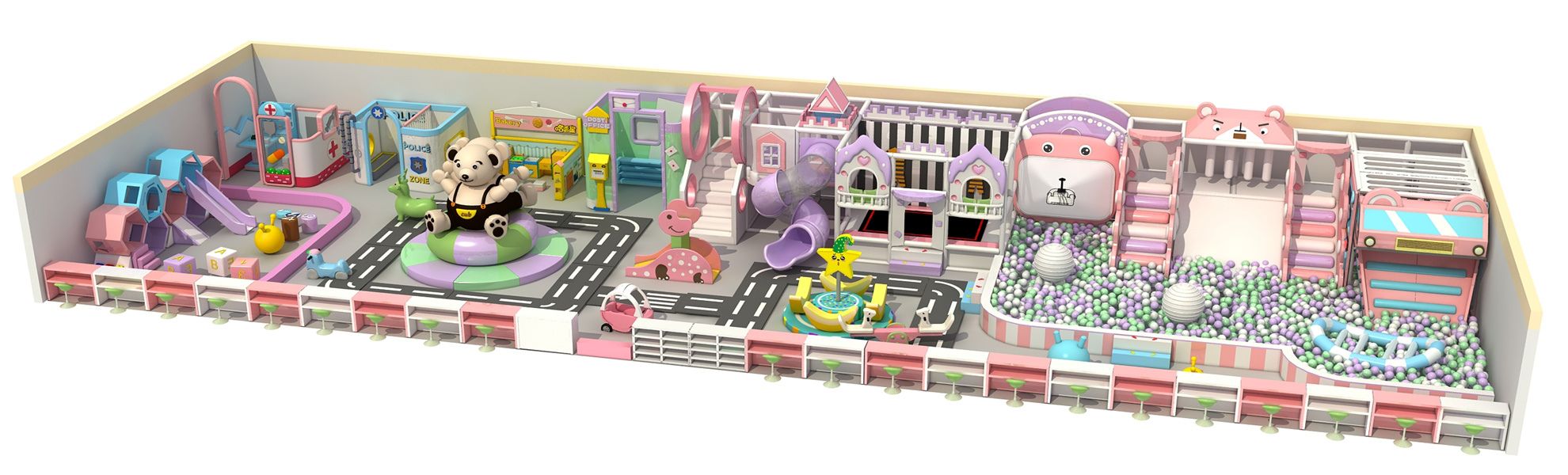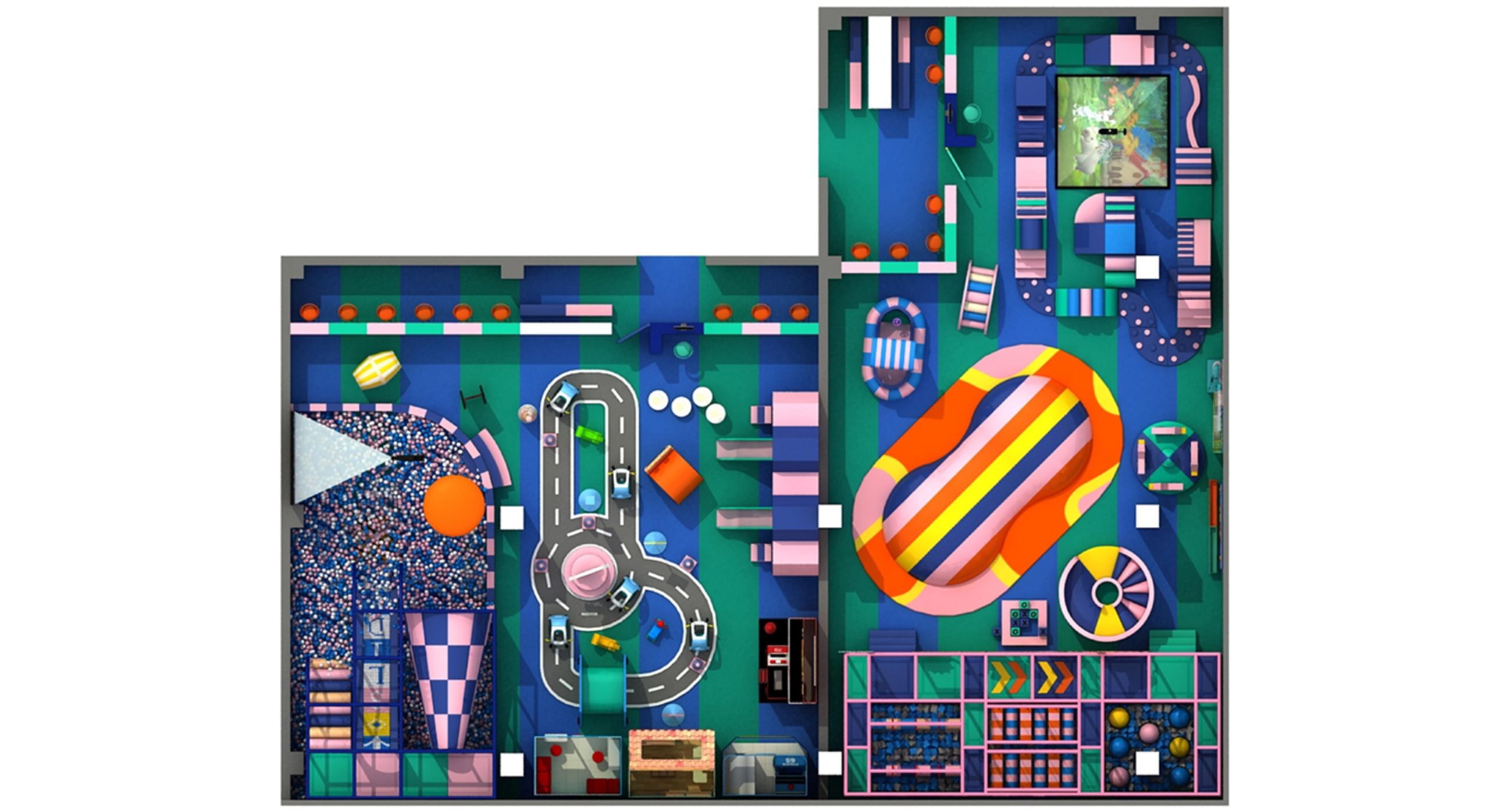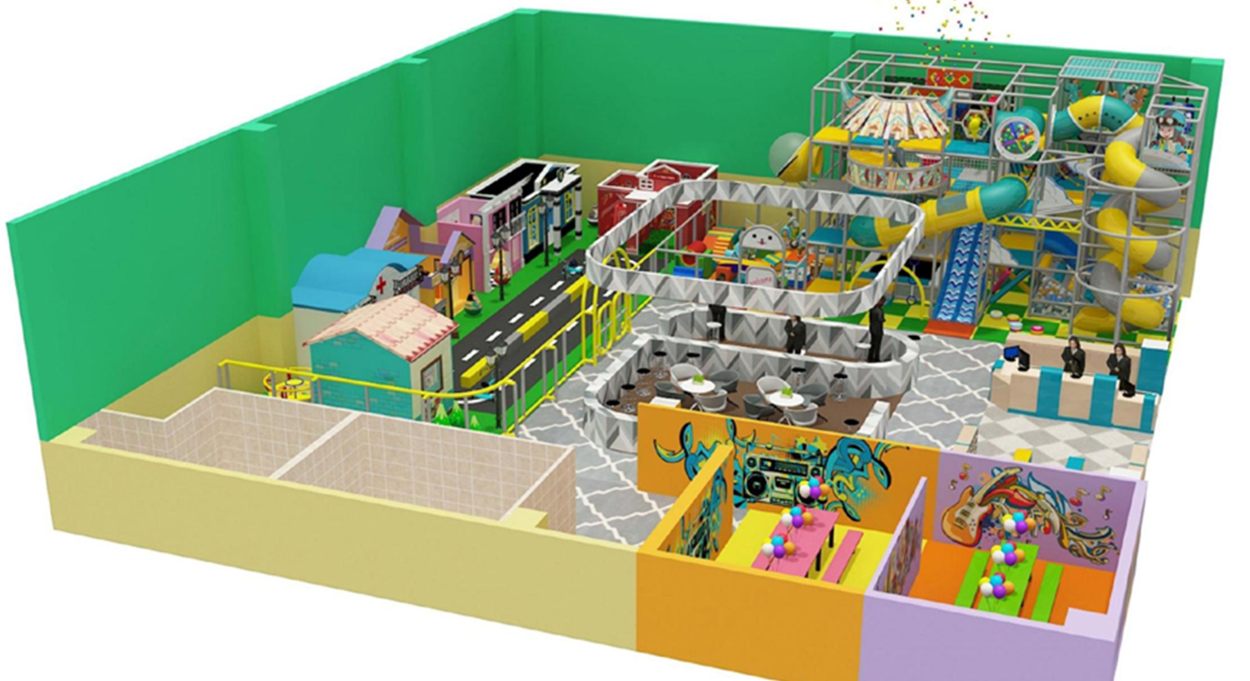A: It includes a framed maze area, sand pit area, soft pack expansion area, ball pit area, etc.