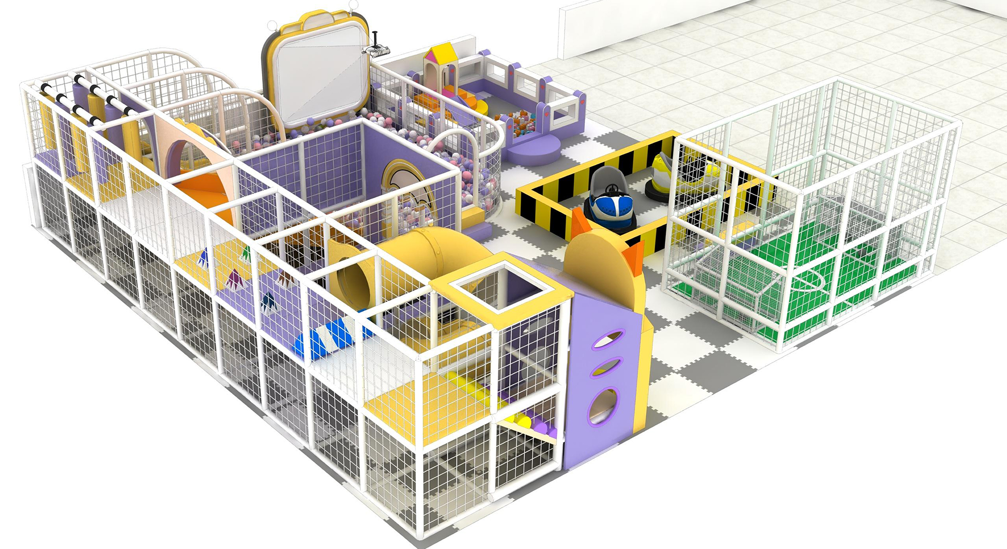 A: It includes a framed maze area, sand pit area, soft pack expansion area, ball pit area, etc.