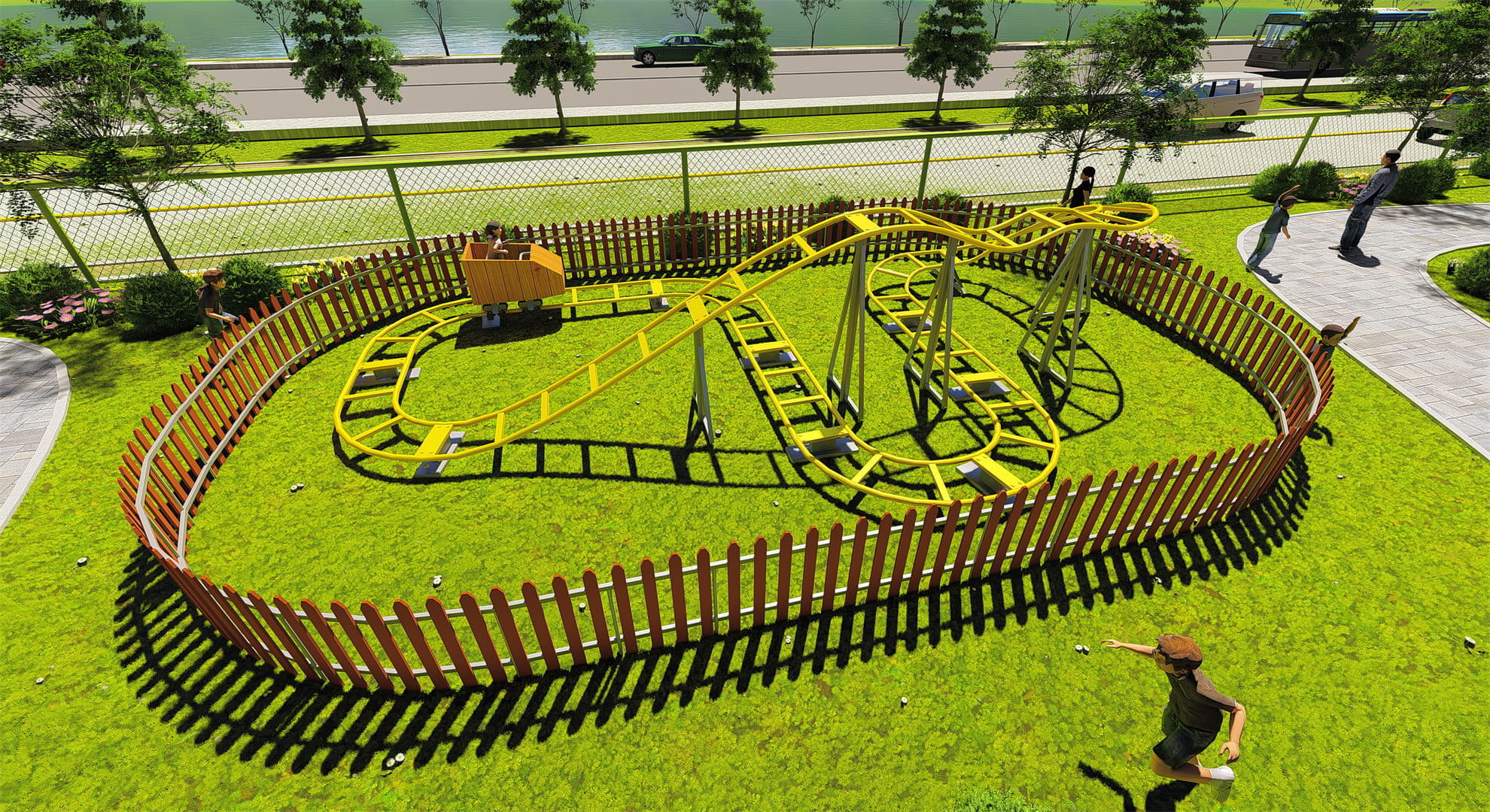 Of course, the fun in the park is not limited to this. At the wooden roller and rotating climbing frame combination, children can release unlimited energy through sports. We have also specially designed a children’s mini roller coaster for young children, allowing them to experience speed and passion in a safe environment.
