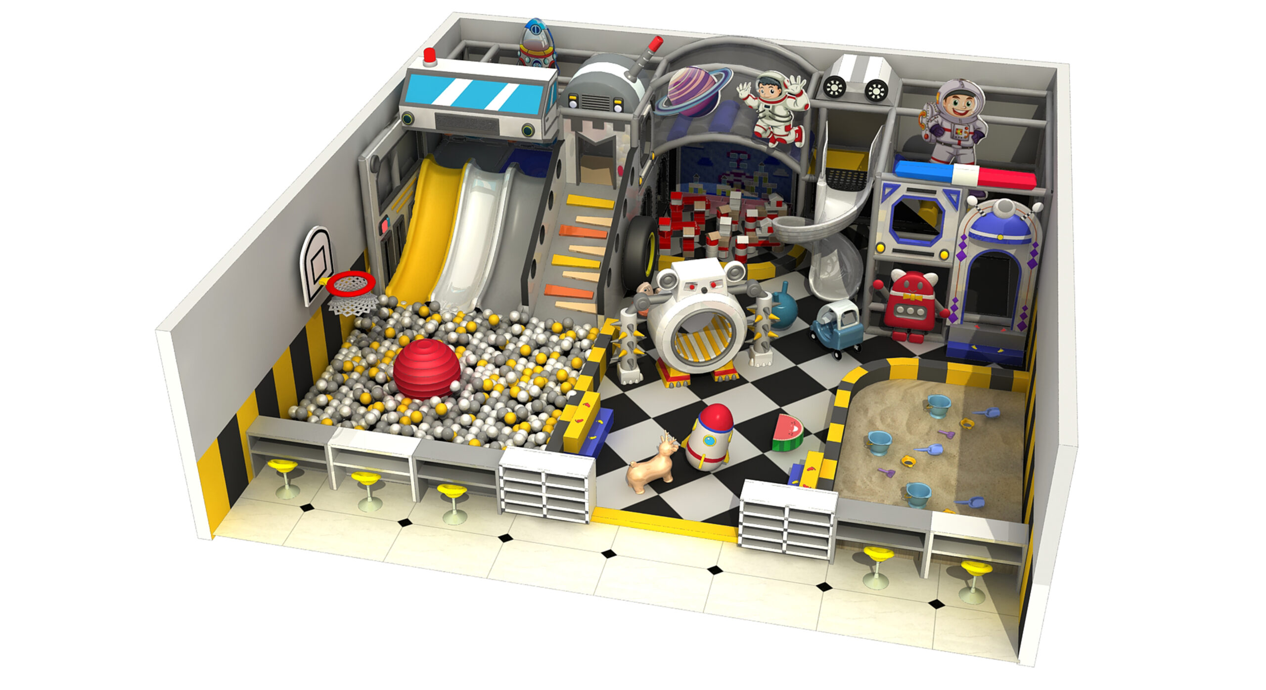 A: It includes a framed maze area, sand pit area, soft pack expansion area, ball pit area, etc.