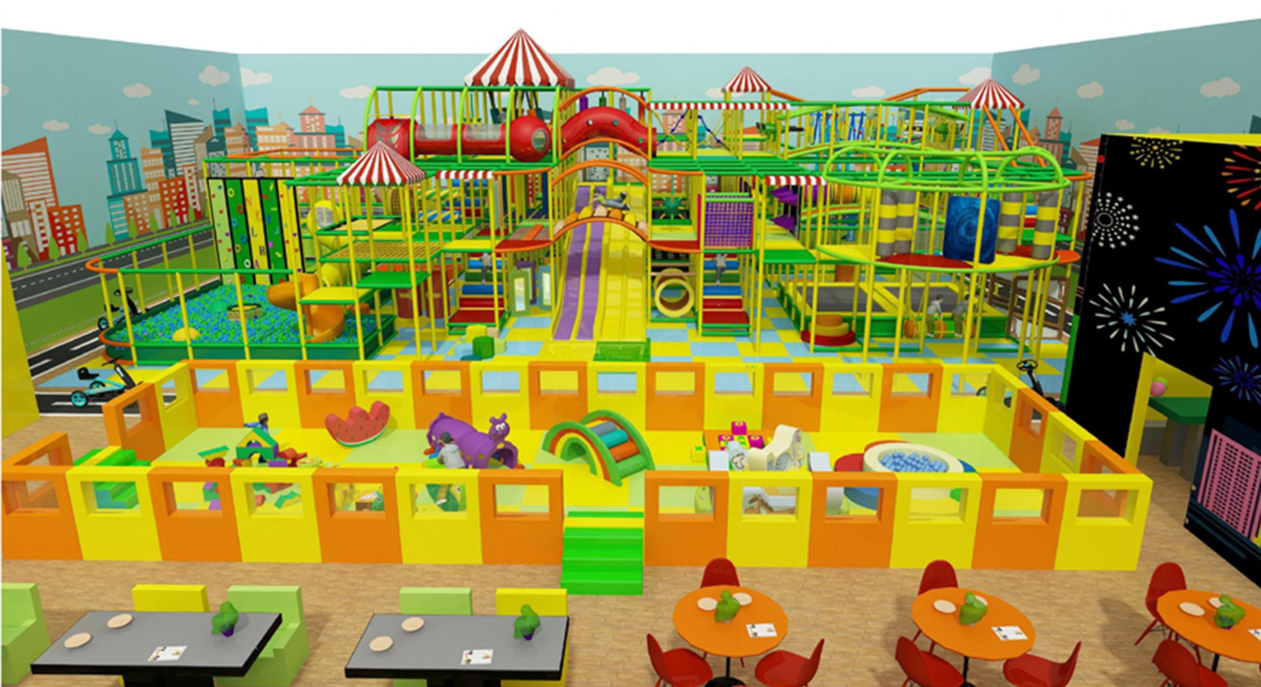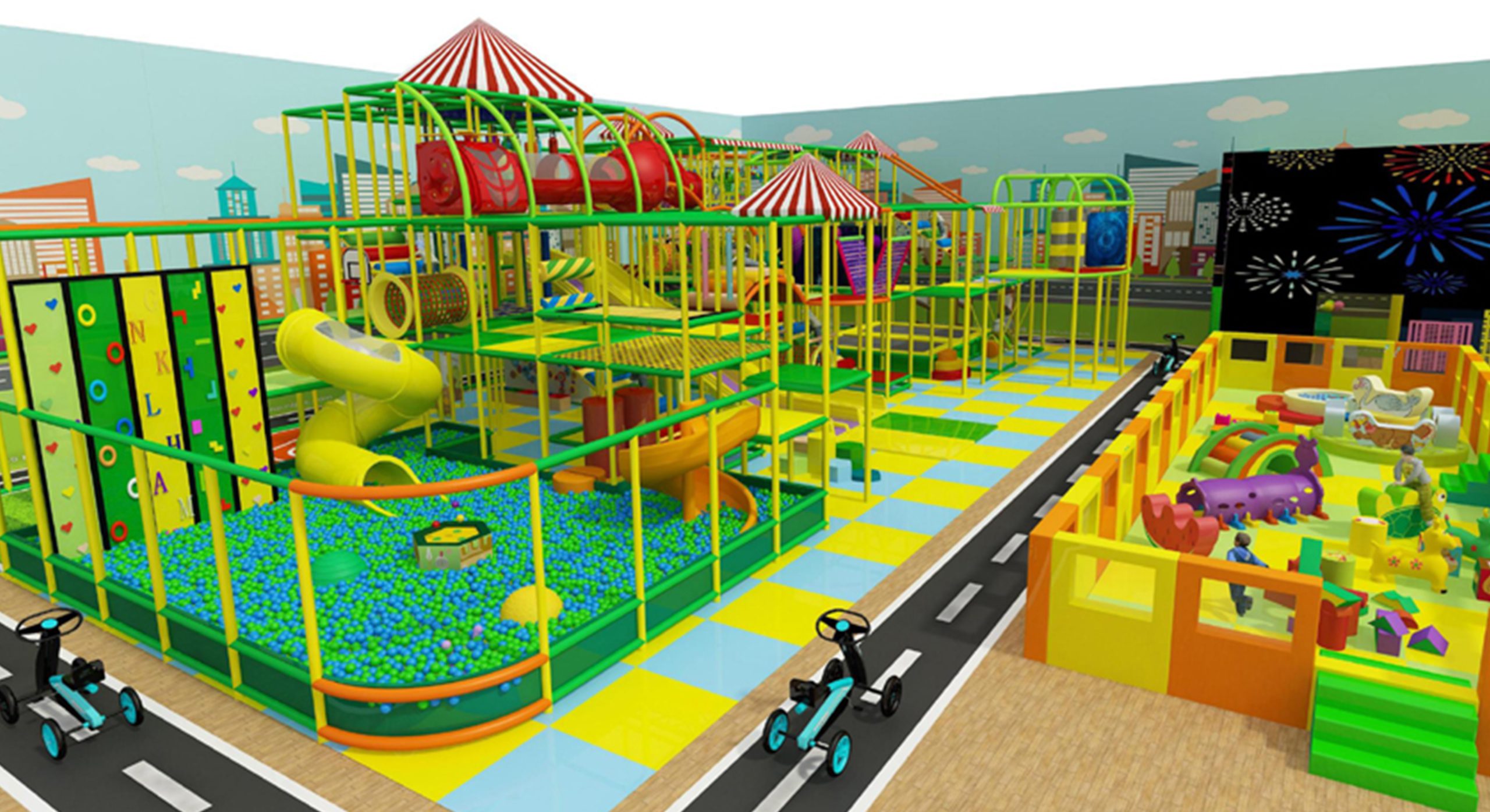 A: It includes a framed maze area, sand pit area, soft pack expansion area, ball pit area, etc.