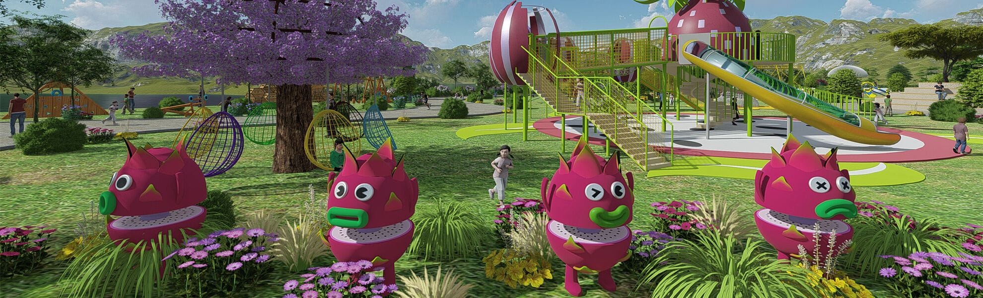 Imagine going down the slide and looking at the sky through the transparent glass plate on the slide. This will become the best memory of children’s childhood. In addition, the park is also equipped with a variety of facilities such as balance rings, rocking cars, and rotating chairs, which enrich the play ability of the park.
