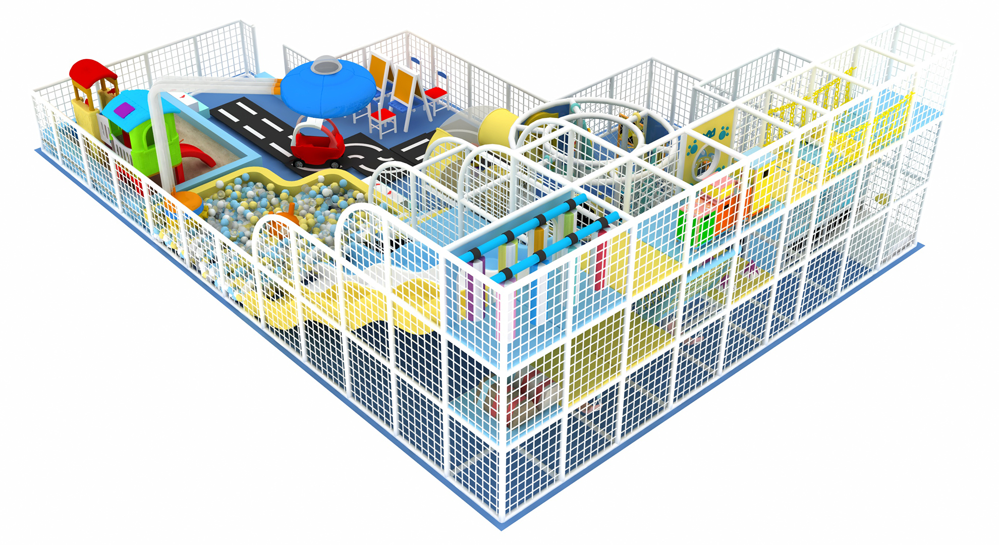 A: It includes a framed maze area, sand pit area, soft pack expansion area, ball pit area, etc.
