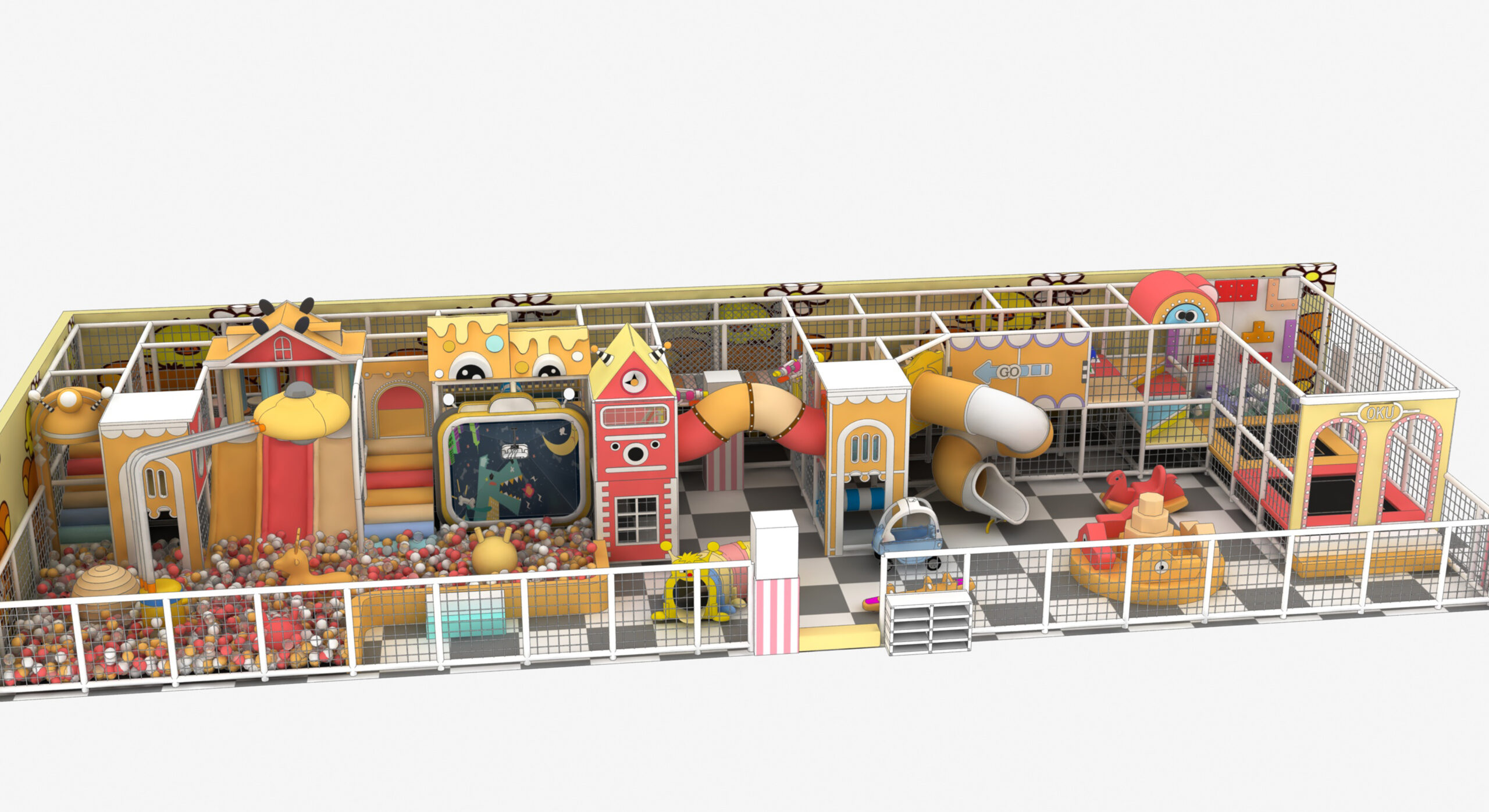 A: It includes a framed maze area, sand pit area, soft pack expansion area, ball pit area, etc.
